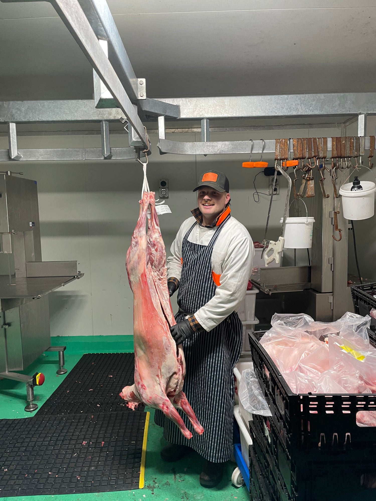 The body is then butchered and packaged before being delivered by refrigerated transport.